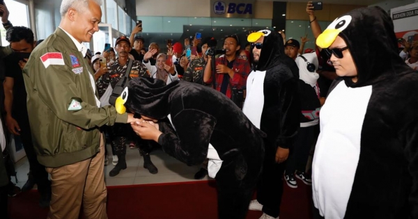 Selamat datang Pak Ganjar. Hormat pada ketua pinguin. Pak minta tandatangan di boneka pinguin saya.https://ouo.io/fS0Cpbl